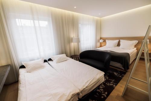 De eleganta rummen på PM & Vänner Hotel har trägolv, platt-TV och sittgrupp. Alla rum har även minibar, te- och kaffekokare, värdeskåp samt strykmöjligheter.